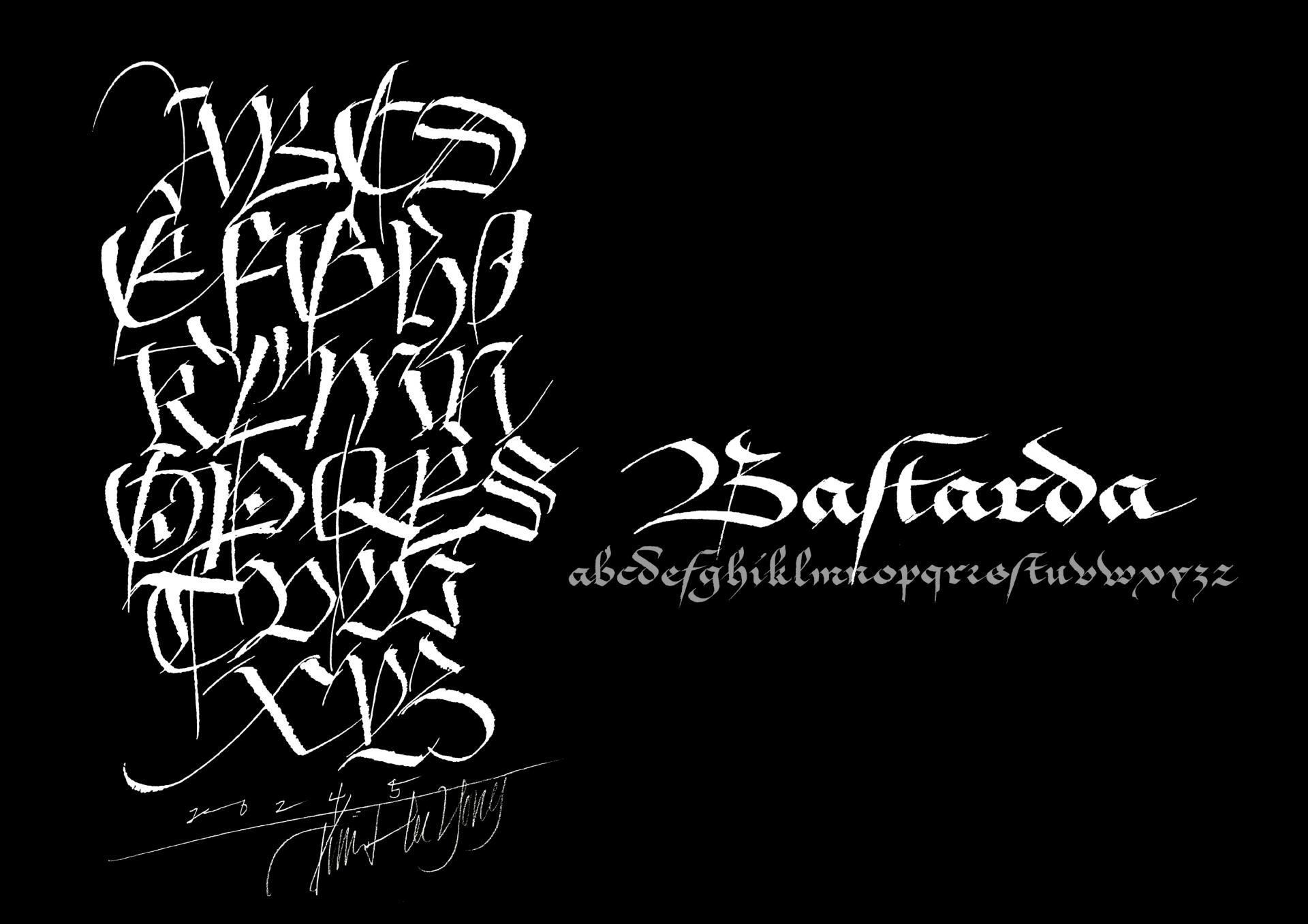 바스타다는 고딕 텍스투라 및 고딕 커시브를 결합해서 만들어졌으며, 고딕 서체가 흘림체 형식으로 변형하면서 파생한 커시브 글자입니다.